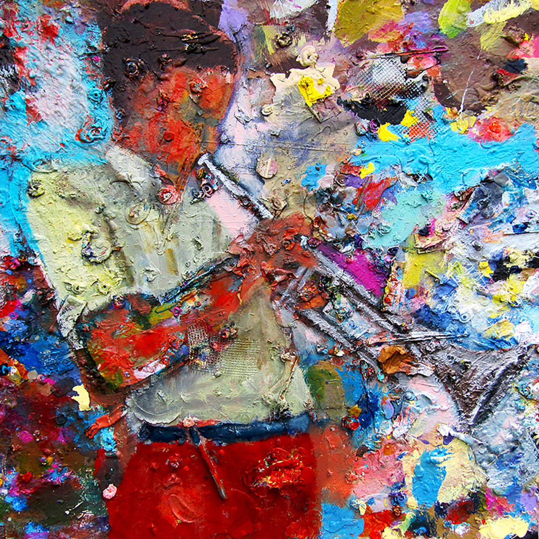 This piece is painted on a palette board where I mix paint and create texture.